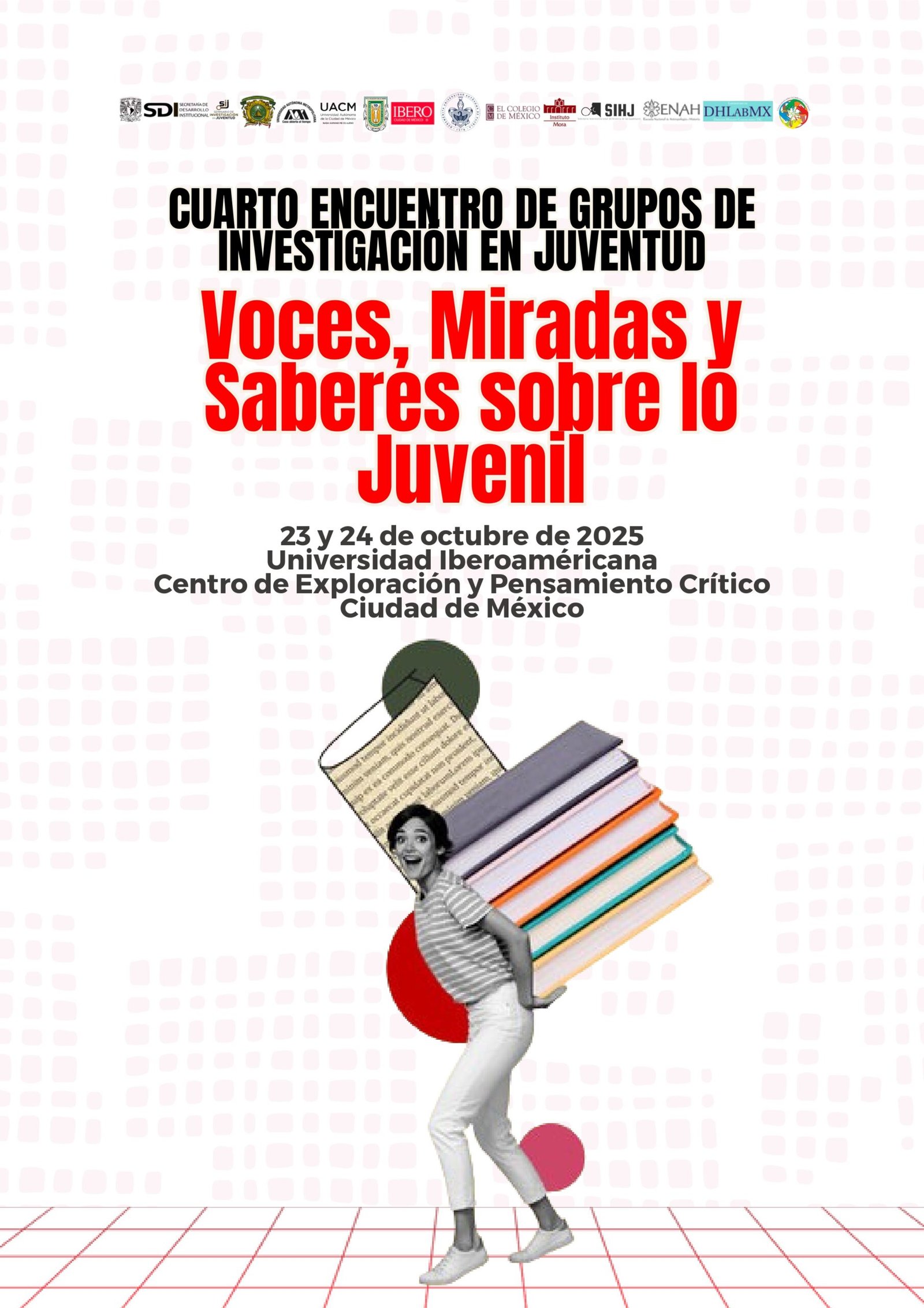 El Seminario de Investigación en Juventud (SIHJ), la Universidad Iberoamericana y las instituciones convocantes tienen el honor de invitar a la comunidad académica y público interesado al Cuarto Encuentro de Grupos de Investigación en Juventud, bajo el lema: “Voces, Miradas y Saberes sobre lo juvenil”.